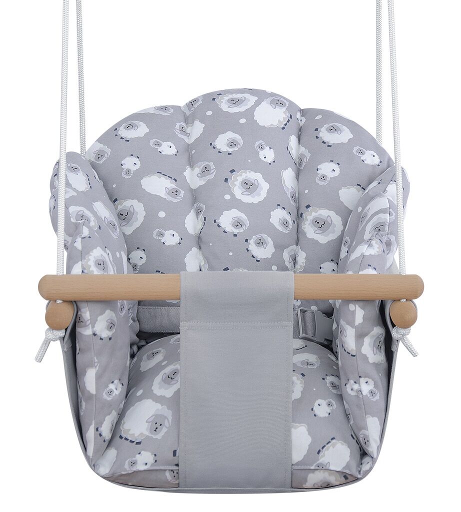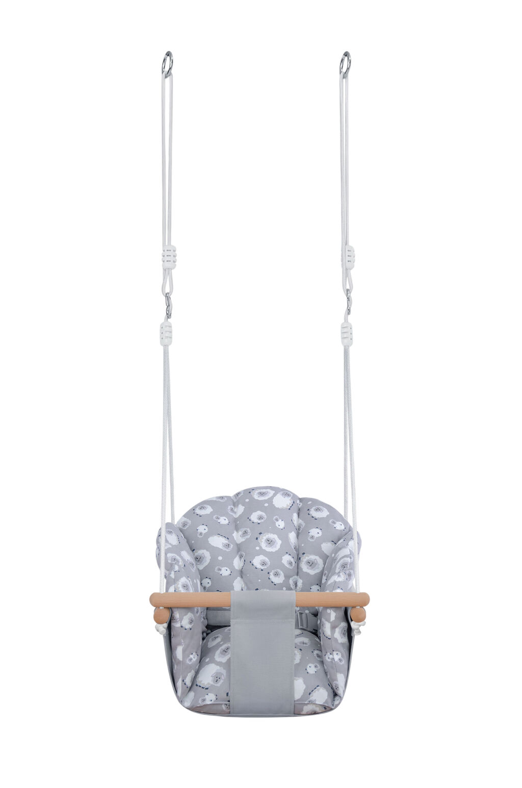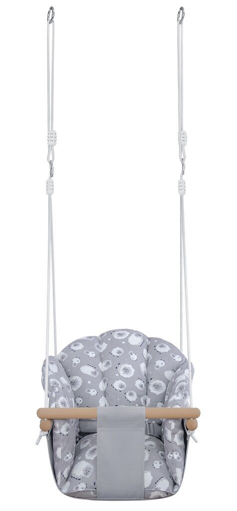 Komfort, bezpečie, zábava... každý predsa vie čo spokojné bábätká potrebujú! Táto detská hojdačka ponúka nielen množstvo hodín zábavy ale aj aktívny odpočinok. Konštrukcia z bukového dreva a sedátko zo 100% bavlny zaisťujú plné pohodlie a bezpečnosť pri hojdaní. Laná s 2 karabínami sú výškovo nastaviteľné (až 180 cm). Vďaka tlmeným farbám a jednoduchému dizajnu je hojdačka taktiež brilantným doplnkom do izbičky!