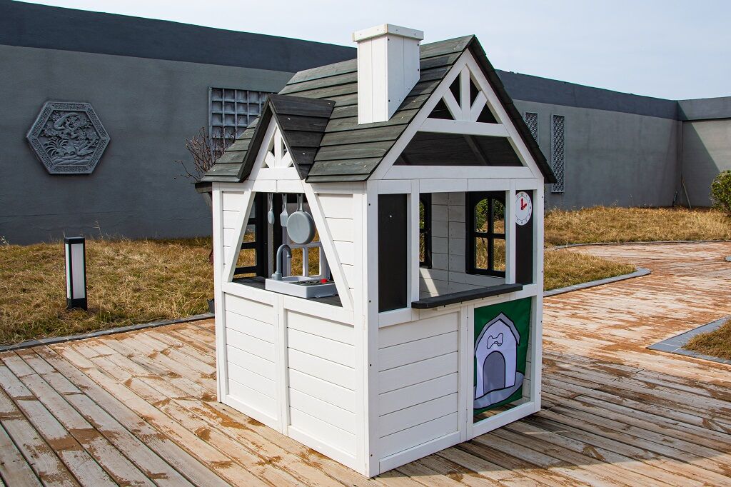 Kto by netúžil po svojom vlastnom bývaní! Doprajte svojim deťom pokojný kút, kde môžu odpočívať, mať súkromie a nerušene sa hrať. V tomto rozkošnom domčeku sa budú cítiť ako v rozprávke. Veľké bočné okno ponúka krásny výhľad do okolia a umožní premeniť domček na predajný stánok alebo obchod. V útulnej kuchynke, v ktorej nechýba varná doska s otočným červeným gombíkom, drez a základný riad, predvedú malí kuchári a kuchárky svoje kulinárske zručnosti a pripravia pre kamarátov alebo rodičov chutné menu. Ďalšími štýlovými doplnkami sú hodiny, hrantíky po stranách vstupných dverí, v ktorých sa budú krásne vynímať kvety, praktický vstup pre psíka, ktorý je prekrytý látkovým závesom s motívom psej búdy. Domček je vyrobený z dreva a opatrený náterom v prírodných farbách. Bude skvelým doplnkom a ozdobou každej záhrady alebo menšieho vonkajšieho priestoru. Tak na čo ešte čakáte? Zazvoňte na zvonček a poďte ďalej!