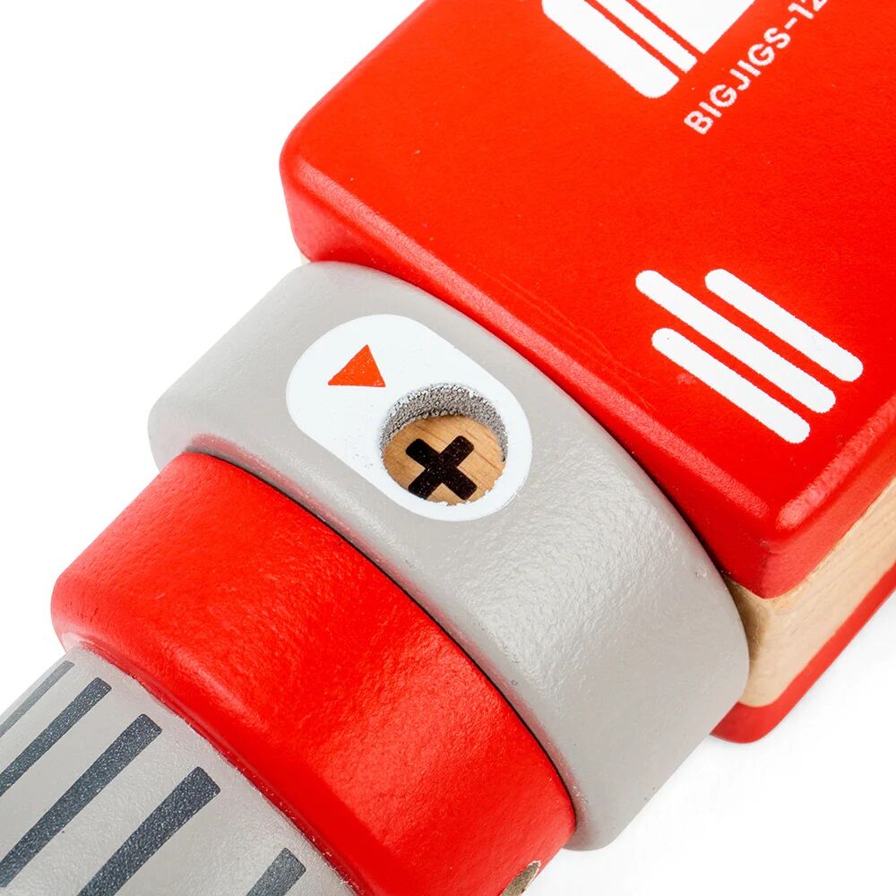 Detská drevená vŕtačka je zábavnou hračkou určenou pre deti, ktoré zaujíma svet remesiel. Má atraktívny design, ktorý priťahuje detskú pozornosť. Začínajúci domáci majstri sa môžu pustiť do svojho projektu s touto vŕtačkou, keď predstierajú, že zostavujú police alebo nábytok. Má všetko, čo by ste očakávali od skutočnej vŕtačky, okrem elektriny a ostrých častí. Tri drevené vrtáky a skrutky sú magnetické a ľahko sa pripevňujú k hlave vŕtačky. Vŕtačka sa otáča ručne. Má klikacie tlačidlo pre zapnutie/vypnutie. Vyrobené z vysoko kvalitných, zodpovedne získaných materiálov.
