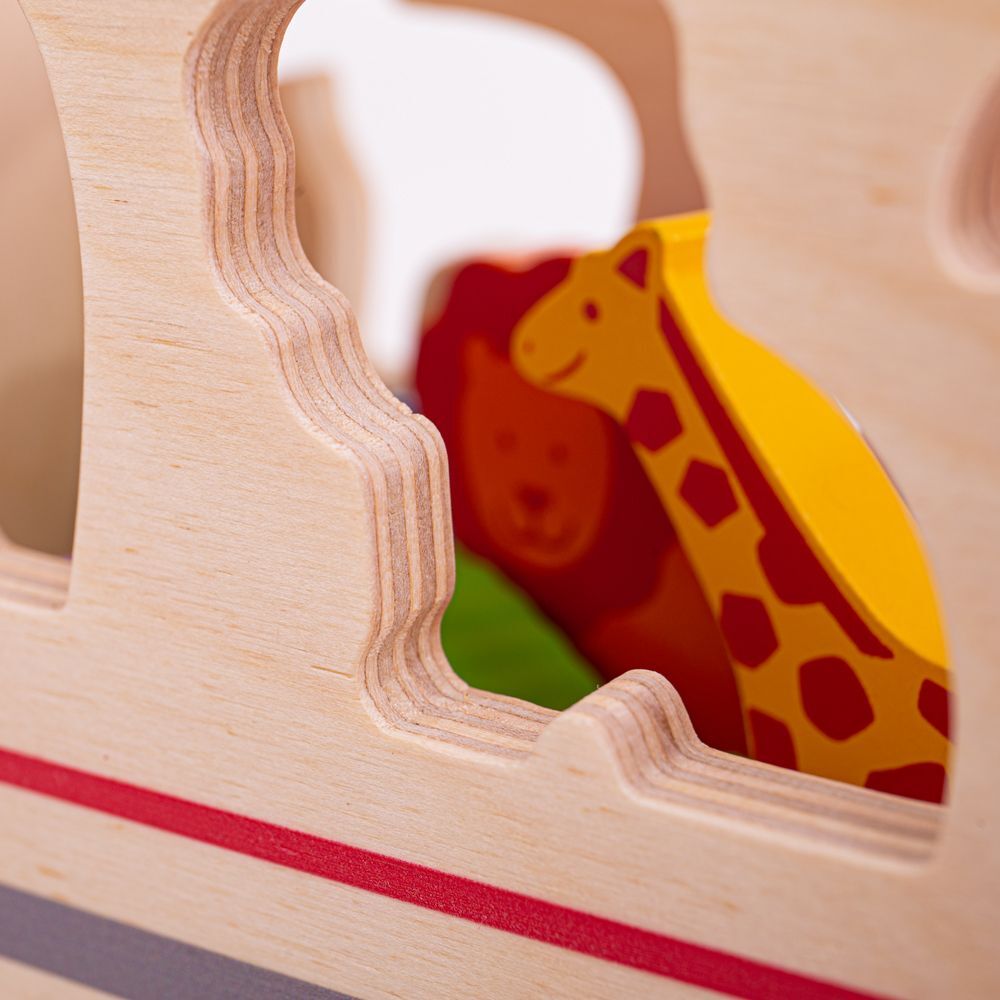 Tieto pestrofarebné drevené zvieratká je možné naložiť na nákladný automobil pomocou špeciálnych otvorov na streche a bočných paneloch vozidla. Roztrieďte tvary a naučte sa všetko o zvieratách, potom každé vložte do správneho otvoru. Akonáhle sú všetky zvieratá bezpečne na palube, uistite sa, že sú zadné dvere zatvorené, a prejdite nákladným autom k ďalšej zastávke.