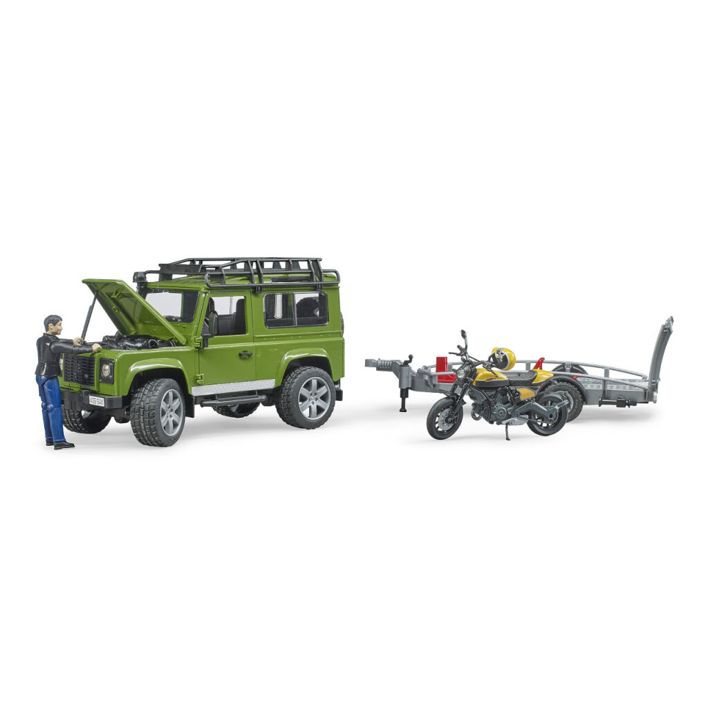 Bruder Land Rover s prívesom, motorkou a figúrkou mierka: 1:16