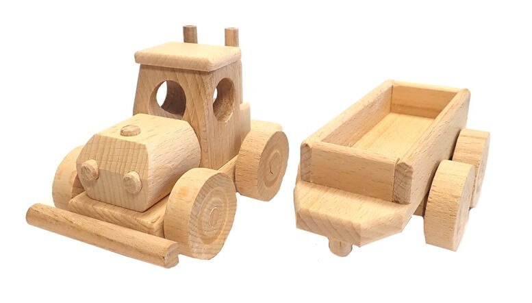 Drevený model auta je vyrobený z kvalitného bukového dreva. Jeho povrch je iba navoskovaný a vyleštený, nie je nijako chemicky ošetrený ani farbený, aby sa zachoval jeho prirodzený vzhľad. Drevené autíčko má otáčavé kolesá a nemá ostré hrany. Je vhodný aj do pieskoviska.
