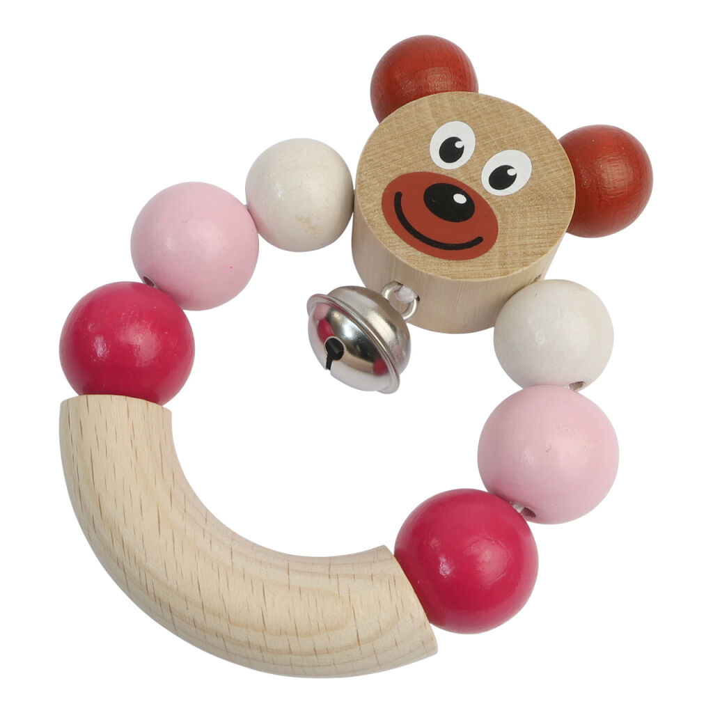Hrkálka s medvedíkom v ružovej farbe. Rolnička jemne cink.