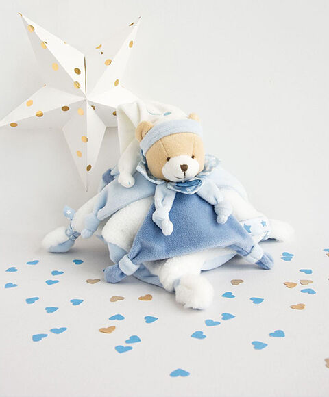 Plyšový muchláčik sprevádza bábätko od narodenia, aby mu priniesol hebkosť, pohodlie a objatie. Ultra jemná a upokojujúca je strana so sviežou bavlnenou potlačou, rozvíja zmysly a zvedavosť. Veľmi pekný darček na Vianoce alebo na oslavu narodenia bábätka. Prezentované v pekne ladiacej krabičke.