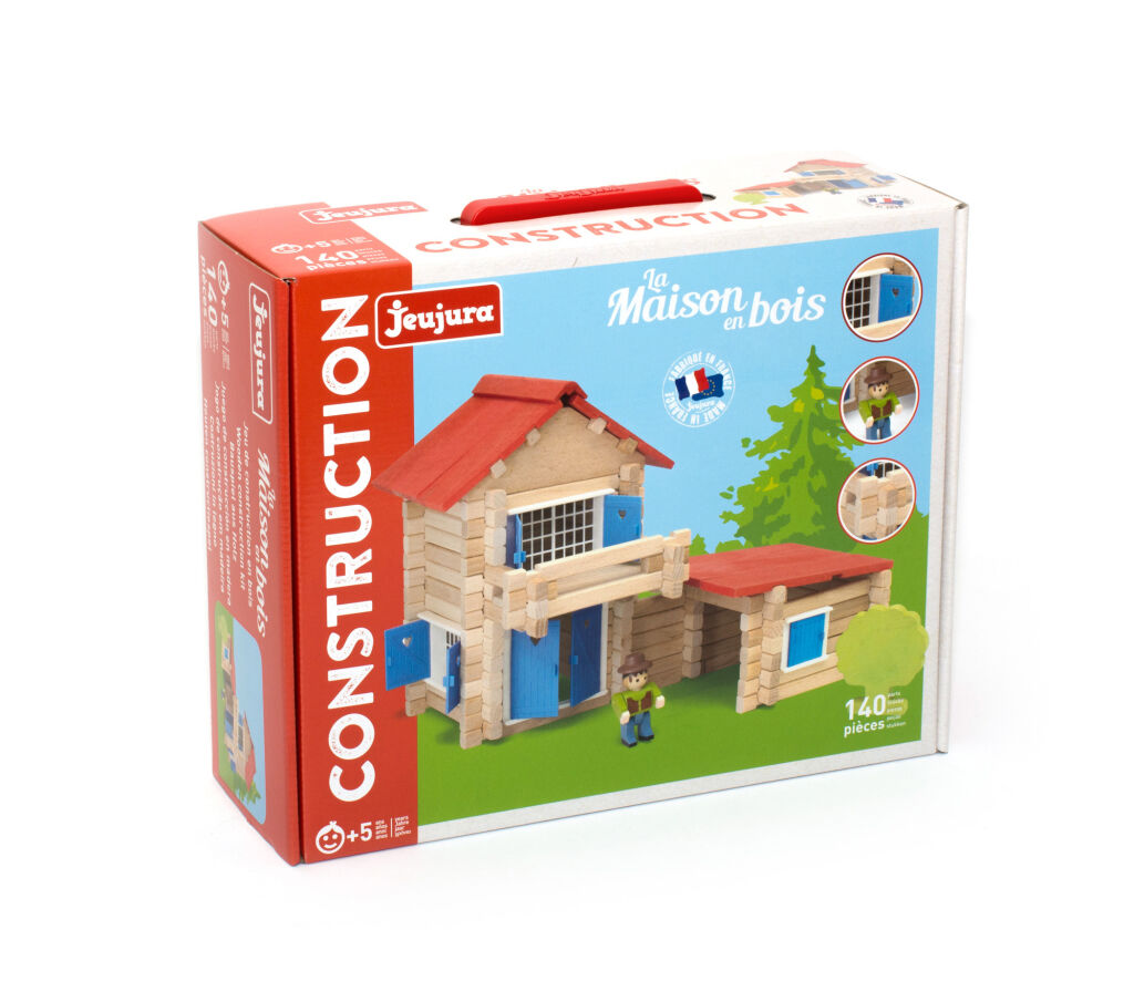 Drevená stavebnica domčeka k hrám s figúrkami rodín rozvíja fantáziu a stane sa ozdobou detskej izby. Stavebnice Jeujura Constructions majú dlhú tradíciu a patrí medzi klasické francúzske hračky. Ponúkajú série tematicky venované chatám, domčekom a farmám, ale aj divokému západu a stredoveku. Dajú sa medzi sebou voľne kombinovať a k rade z nich je aj ponúkané príslušenstvo, figúrky a vozidlá. Sú vyrábané vo Francúzsku, z masívneho bukového a borovicového dreva francúzskeho pôvodu. Dieliky sú ošetrené výhradne za použitia farieb a lakov na báze vody. Každá sada je balená v praktickom lepenkovom kufríku potlačenom rastlinnými atramenty a súčasťou balenia je ľahko pochopiteľný návod.
