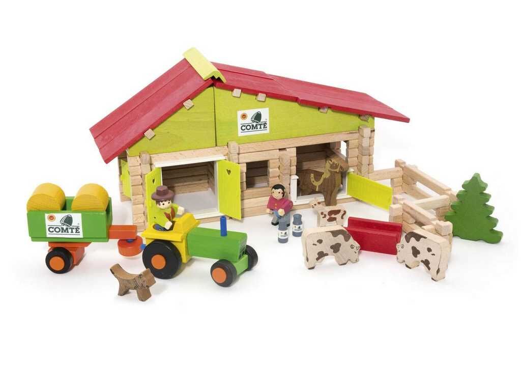 Drevená stavebnica, ktorá zoznámi malých staviteľov so životom na farme, stane sa ozdobou detskej izby. Stavebnice Jeujura Constructions majú dlhú tradíciu a patrí medzi klasické francúzske hračky. Ponúkajú série tematicky venované chatám, domčekom a farmám, ale aj divokému západu a stredoveku. Dajú sa medzi sebou voľne kombinovať a k rade z nich je aj ponúkané príslušenstvo, figúrky a vozidlá. Sú vyrábané vo Francúzsku, z masívneho bukového a borovicového dreva francúzskeho pôvodu. Dieliky sú ošetrené výhradne za použitia farieb a lakov na báze vody. Každá sada je balená v praktickom lepenkovom kufríku potlačenom rastlinnými atramenty a súčasťou balenia je ľahko pochopiteľný návod.