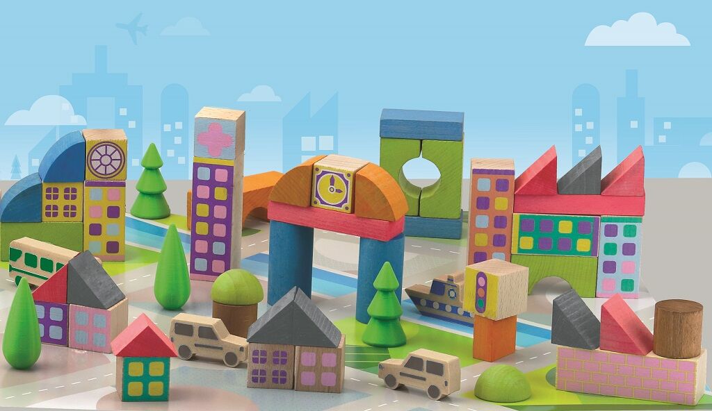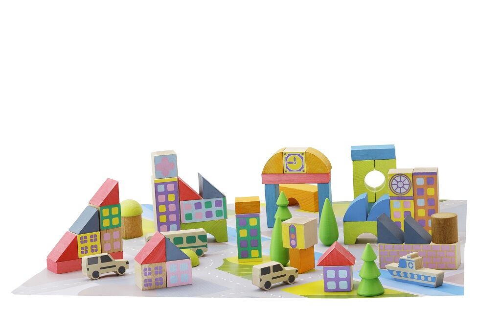 Jeujura Drevená stavebnica Mestečko z kociek 50 dielov