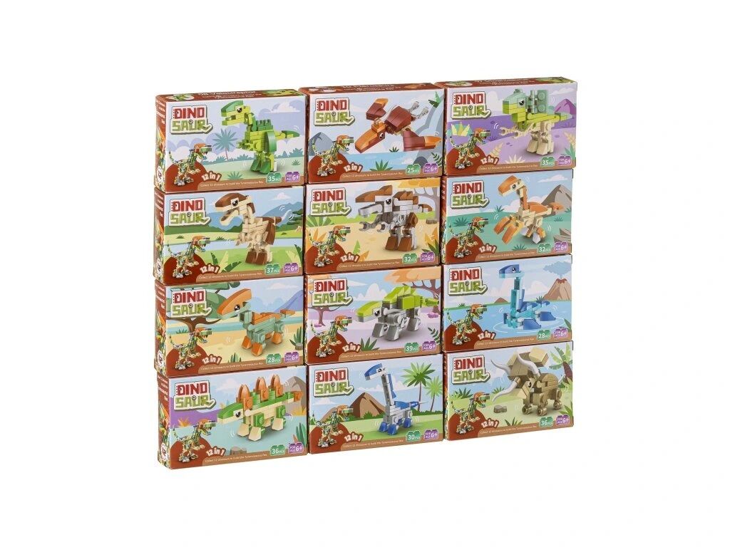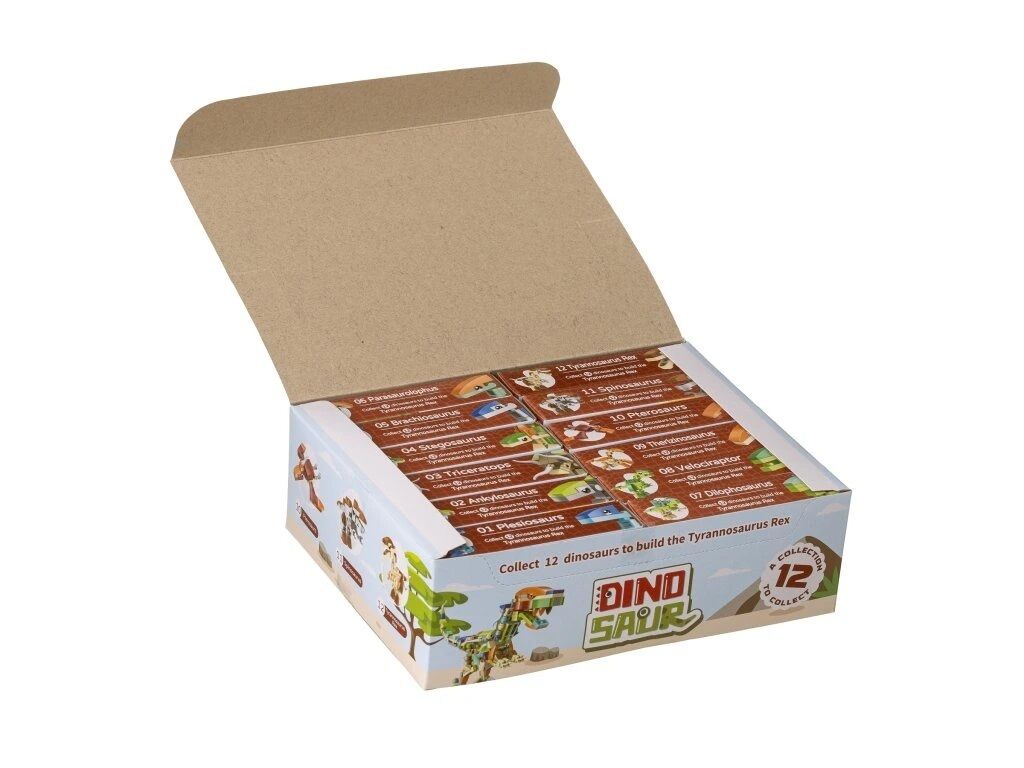 Kolekcia 12 ks dinosaurov. Poskladajte si 12 malých dinosaurov alebo si z nich rovno zložte veľkého Tyranosaura rexa. Pre zloženie T-rexa musia byť k dispozícii všetky kocky z boxu. Z dôvodu veľkého množstva špecifických dielikov je stavebnica vhodná skôr pre väčšie deti. Každý dinosaurus je balený v samostatnej papierovej krabici. Kocky sú v plastikovom obale s návodom. Na návode je vždy na jednej strane návod na zloženie dinosaura z krabičky a na druhej strane je potom časť návodu na zloženie Tyranosaura rexa.