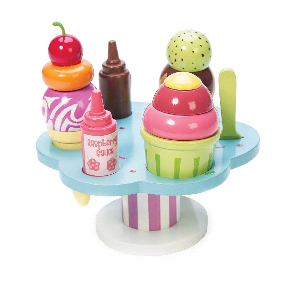 Kopček alebo dva? Deti si s touto predstavivou hračkou na role užijú mnoho zábavy. Deti môžu zmrzlinu servírovať v tégliku alebo kornútku, je možné vybrať z dvoch topingov aj posypiek, nechýba ani lyžička. Perfektná hračka nielen na teplé letné mesiace. Vyrobené z odolného a udržateľného FSC® dreva, maľované netoxickými farbami na báze vody.