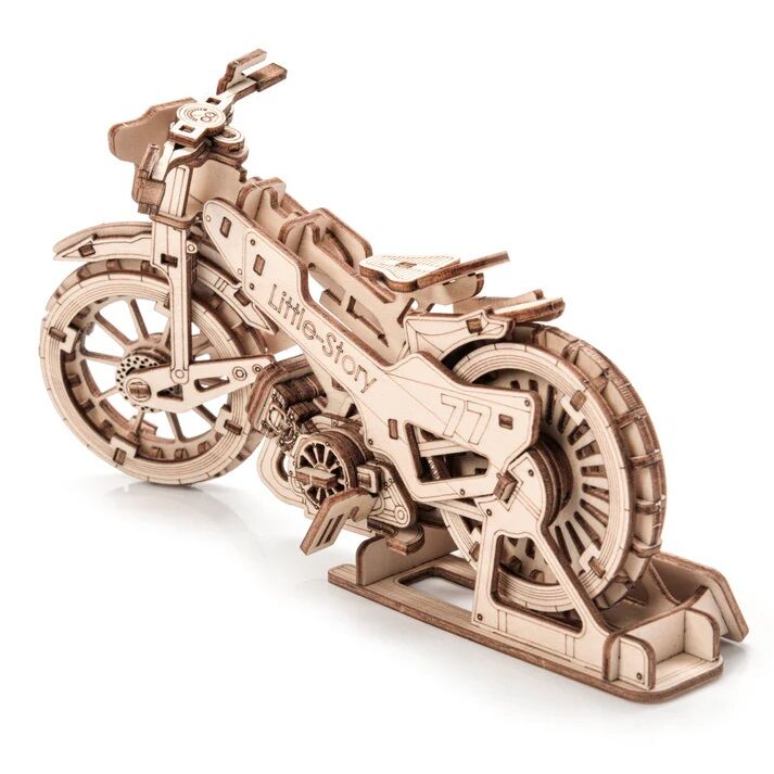 Skladanie modelu podporuje sústredenie, trpezlivosť a jemnú motoriku. Po dokončení vznikne detailný drevený model motocykla, ktorý môže slúžiť nielen ako zaujímavý projekt na skladanie, ale aj ako štýlová dekorácia do izby, kancelárie alebo zbierky modelov.