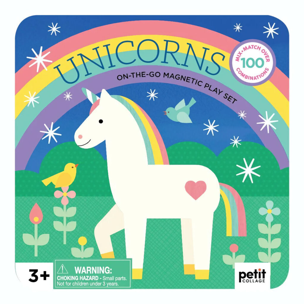 Petit Collage Magnetická hrací sada - jednorožci - poškozená kovová krabička