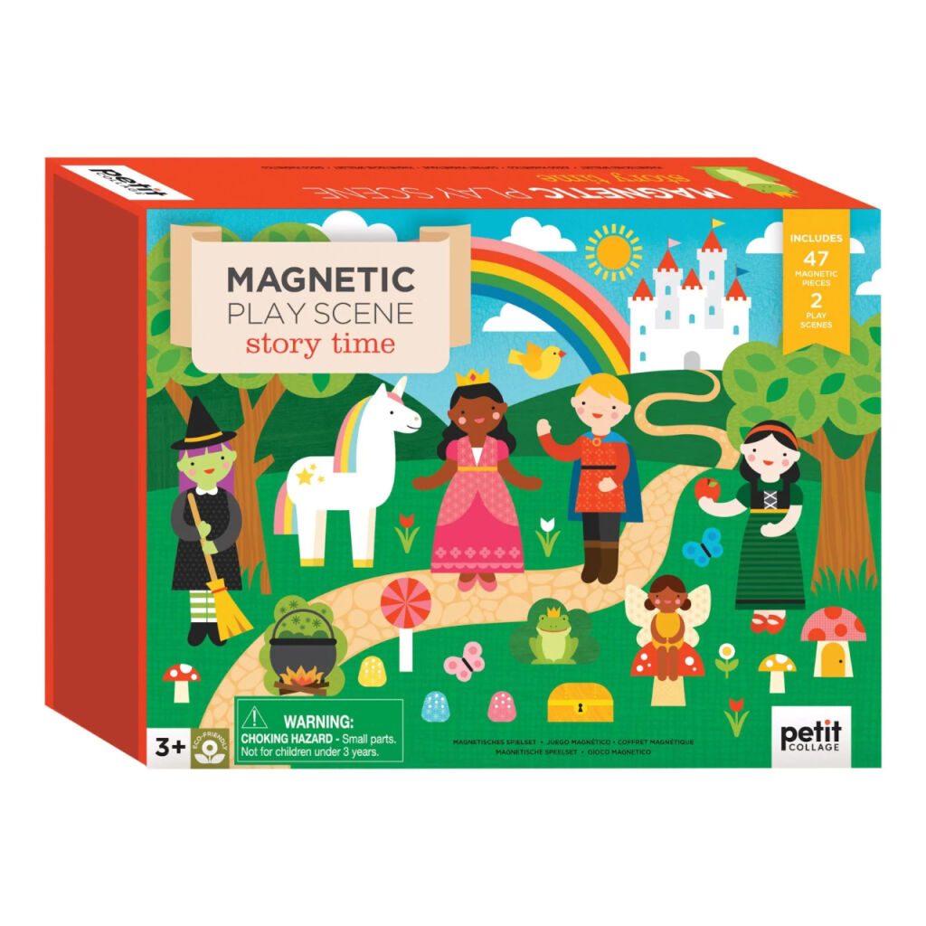 Táto prenosná sada hier obsahuje 47 magnetických dielikov a dve magnetické tabuľky, z ktorých si môžete vybrať. Možno použiť ako divadielko. Magnetickú scénku môžete aj postaviť vďaka zarážkam v krabici. Tvorte vlastné rozprávkové príbehy cez deň alebo v noci. Môžete si vytvoriť nekonečné kombinácie scén. Praktická skladacia krabička, ktorá napomáha rýchlemu upratovaniu dielikov a uloženiu na poličku. Robustná konštrukcia je vyrobená tak, aby mala dlhú životnosť.
