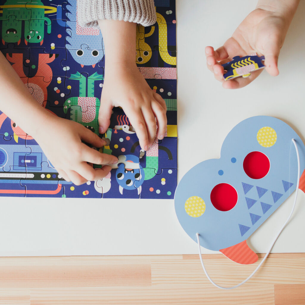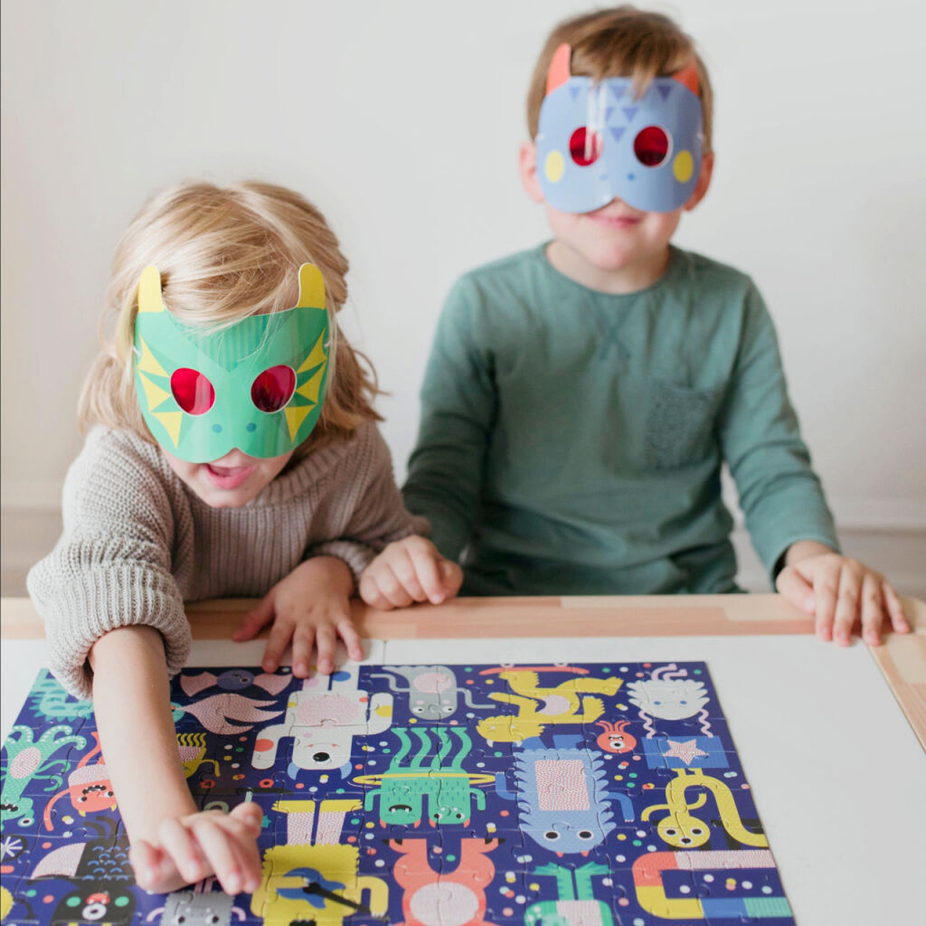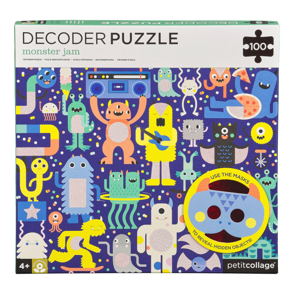 Petit Collage Puzzle príšerky 100 ks s 3D okuliarmi