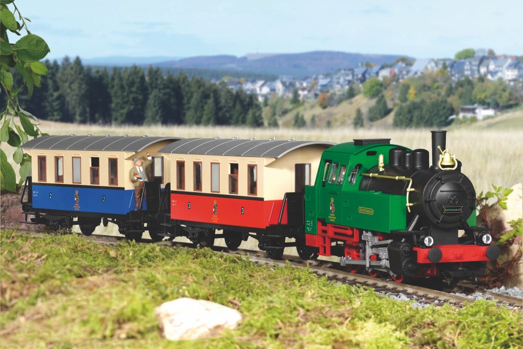 Štartovacia sada súpravy osobného vlaku skladajúci sa z parnej lokomotívy BR 80 a dvoch osobných vozov, jedného 2. triedy a jedného 3. triedy. Zaujme farebnosťou a dekorom bavorského dopravcu z čias cisárstva, Königlich Ketschenbacher Kreisbahn. Lokomotíva má chrómovaná dvojkolesia a je vybavená guličkovými ložiskami. Disponuje osvetlením meniacim sa v závislosti od smeru jazdy a je prichystaná pre inštaláciu zvukového modulu, výrobníka dymu a digitálneho dekodéra. Sada zahŕňa paličku k rozpojení spriahadiel, slúžiací na odpojovanie a pripájanie vozov. Sady PIKO G sú vhodné do interiéru aj exteriéru a právom sú označované za "odolné poveternostným vplyvom". Vyrobené v Nemecku, v súlade s najprísnejšími štandardmi kvality. Nákup sady je vhodné doplniť o príslušný spotrebný materiál.