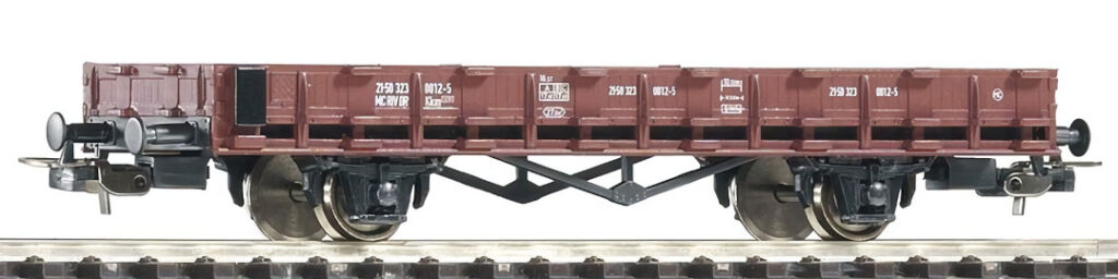 Model dvojnápravového nízkostěnného vagónu Kkm3230 v prevedení DR ponúka prepracovaný, členitý výlisok bočníc a detailnú potlač.