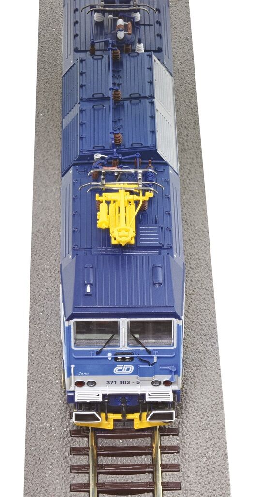 Predstavujeme Vám model elektrickej lokomotívy 371 003-5 Českých dráh v prevedení Najbrt s bohatou výbavou a funkciami. Model sa vyznačuje detailným spracovaním strechy s lamelami ventilátora a inovatívne upevnenými zberačmi, detailným prevedením podvozku s lúčovými kolesami a mnohým ďalším vybavením, ako je digitálne ovládané osvetlenie kabíny, ovládacieho panelu a strojovne. Čo sa týka zvuku, nechýba ROCO Dynamic-Sound System.