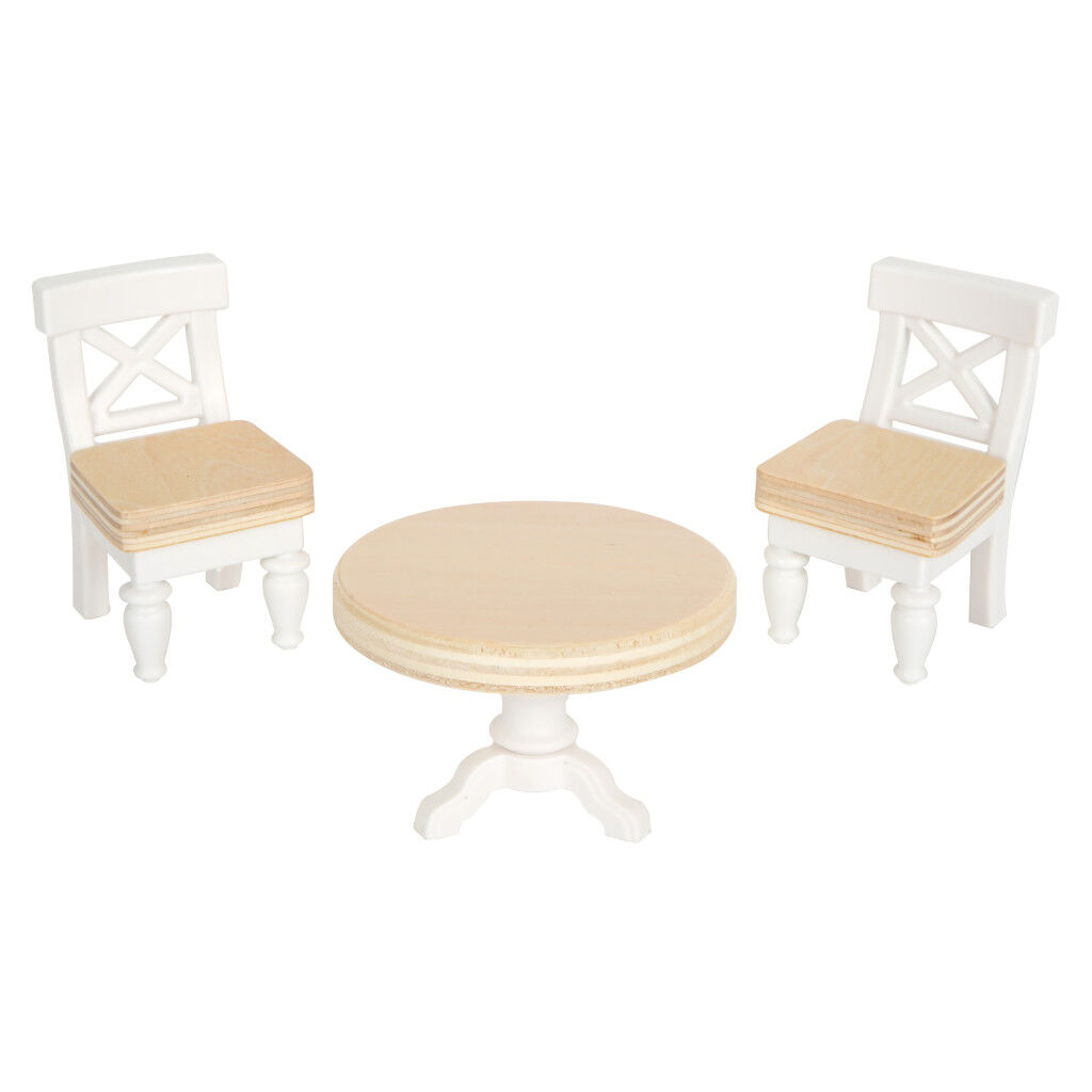 Súčasťou je 12 kusov nábytku a rôzne doplnky s drevenými aj plastovými detailmi, ktoré zaisťujú realistickú a zábavnú hru. Nechýbajú ani schody, posuvné dvere, otvárateľné okná, nočné stolíky so zásuvkami a dokonca aj funkčný zvonček, ktorý oznamuje príchod návštevy – všetky tieto prvky dodávajú domčeku autentickosť a podporujú detskú predstavivosť.