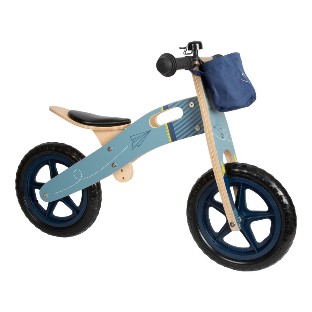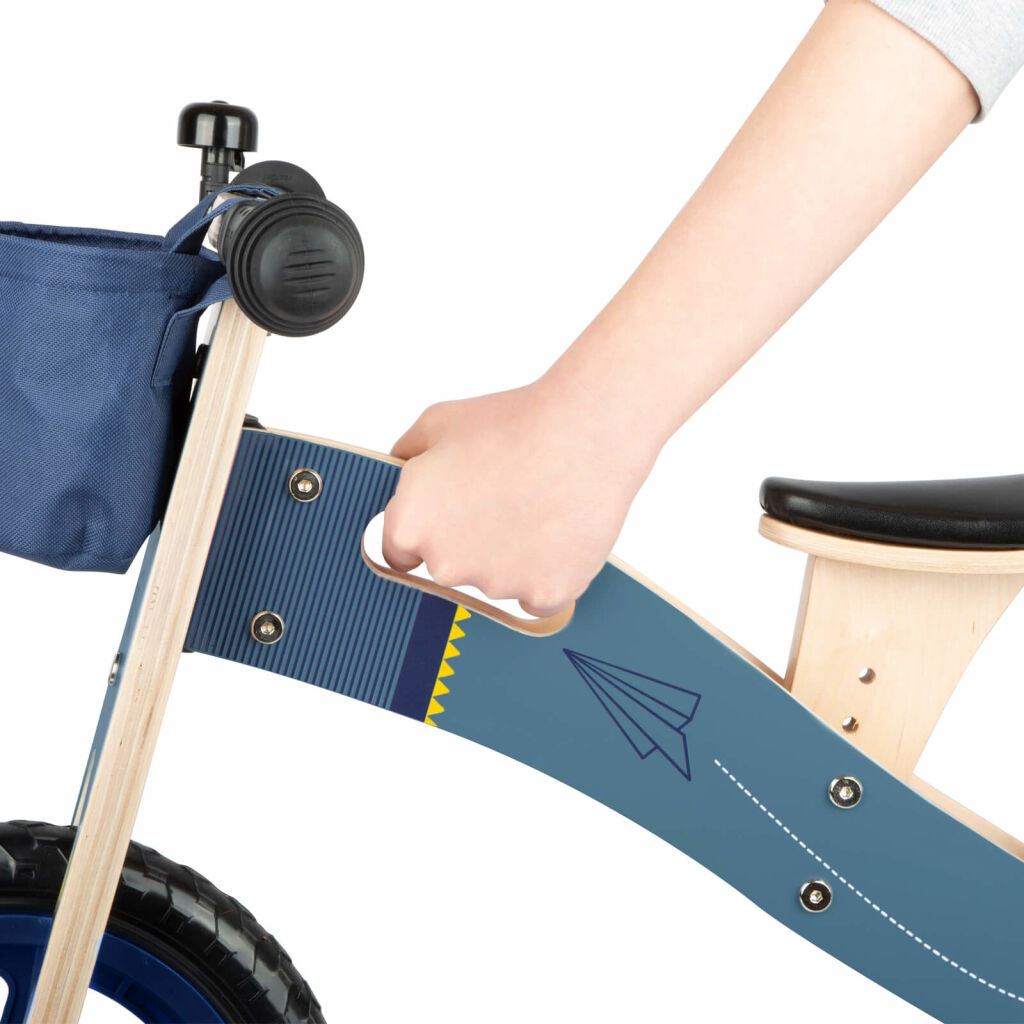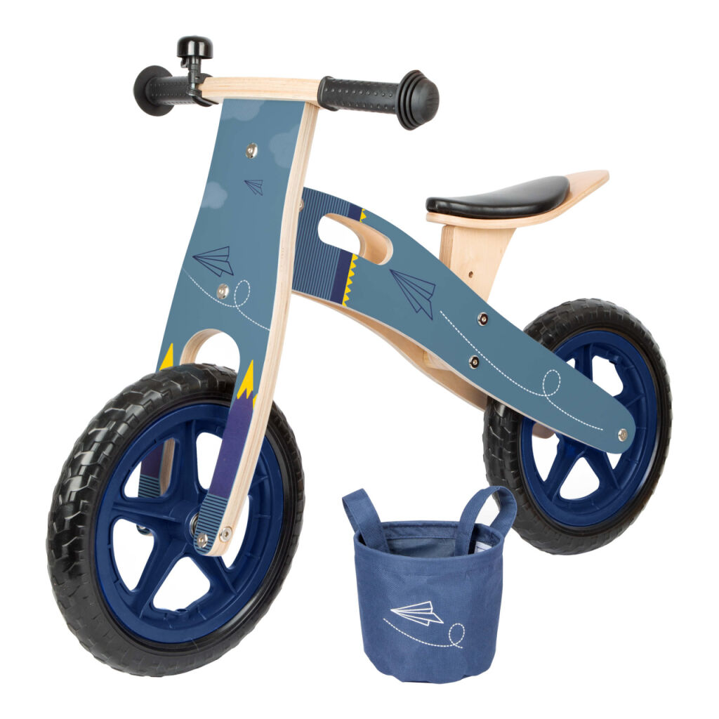 Rýchly ako stíhačka! S dizajnom v odtieňoch modrej a potlačou papierového lietadla toto odrážadlo nadchne skôr chlapca. Sedadlo je možné nastaviť na tri rozdielne výšky, takže odrážadlo porastie s deťmi. Hračky si deti môžu vložiť do oddeliteľného košíka. Skvelé je, že keď sa deti unavia, môžu rodičia niesť koleso cez rameno vďaka nastaviteľnému popruhu. Pre pridanú bezpečnosť je na riadidlách tlmič riadenia. Zvonček, gumové rukoväte, nezničiteľné EVA pneumatiky a mäkké sedadlo zaručujú zábavnú a bezpečnú jazdu. Balančné odrážadlo tránuje motoriku, rovnováhu a koordináciu a pripravuje deti na jazdu naozajstného bicykla.