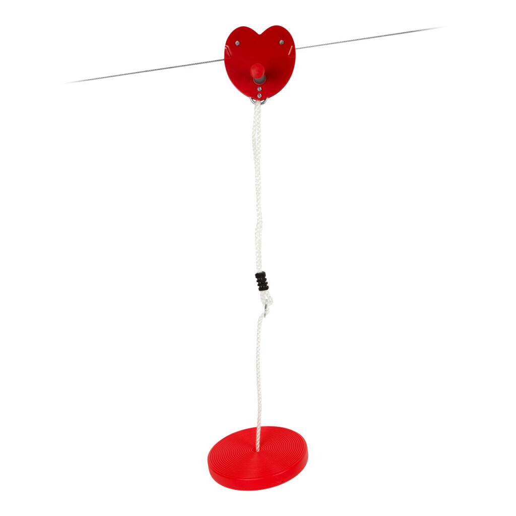 Zažite neprekonateľnú adrenalínovú jazdu na vlastnej záhrade! Oceľové lano dráhy jednoducho napnete medzi dva stromy alebo stĺpiky a hneď sa môžete preháňať vzduchom ako o závod, navyše rovno dvoma spôsobmi! Uháňať môžete zavesení na kladke za madlá s nekĺzavou úpravou, alebo v sede, či v stoji na diskovej hojdačke, ktorá je súčasťou balenia a môžete ju použiť aj samostatne. Pre bezpečné a mäkké zabrzdenie je koniec lana opatrený gumovým návlekom. Odolný záves hojdačky je vybavený kovovým prievlakom, s pomocou ktorého kedykoľvek ľahko upravíte výšku hojdania. Diskové sedátko je čiastočne pružné a vyplnené vzduchom, tlmí otrasy a prispieva pohodliu.