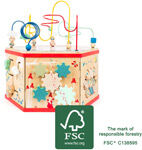 Zábava v exkluzívnom dizajne! Táto kvalitná motorická kocka zo 100% certifikovaného dreva FSC® zo skupiny produktov "Move it!" Ponúka herné prvky na každej strane kocky. Skladacie drevené pexeso precvičuje numerické porozumenie, zábavná vyhľadávacia hra s ježkami, lienkami a vtákmi a sezónne hodiny odhalia zaujímavé fakty o jari, lete, jeseni a zime. Motorickú kocku dopĺňa hra s ozubenými kolesami a labyrintom. Zábavu završuje veľký kovový labyrint na odnímateľnom veku.