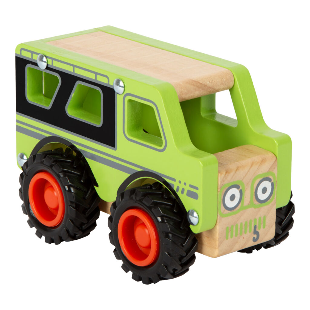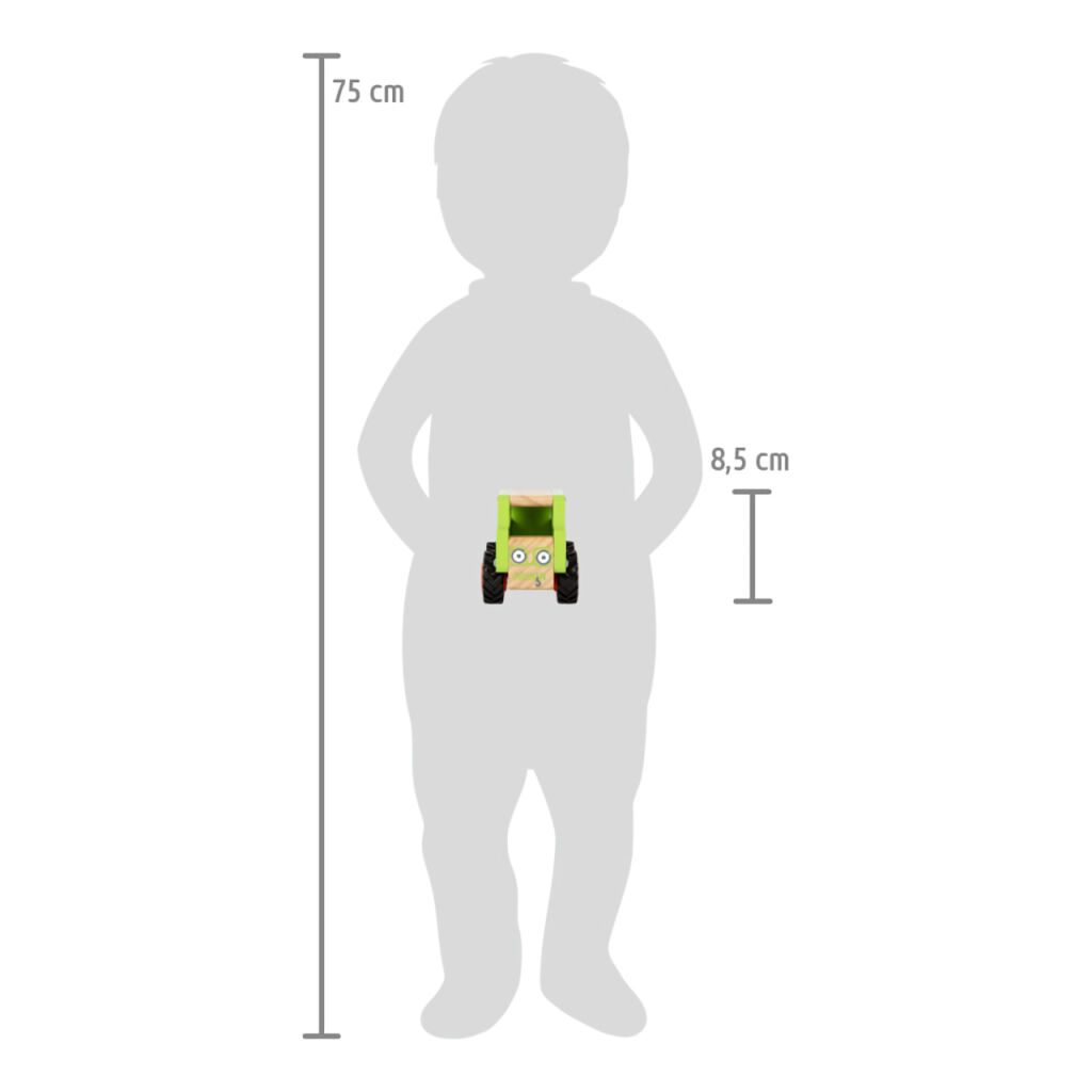Robustné a odolné autíčko vyrobené z masívneho, udržateľne získaného dreva. Disponuje priestrannou, otvorenou kabínou, do ktorej je možné usadiť figúrku vodiča. Gumové kolesá autíčka zaisťujú kultivovaný tichý chod na všetkých typoch povrchov.