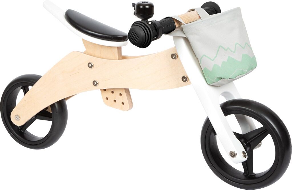 Najprv tréningová trojkolka, potom balančné kolo! Táto kompaktná vyvážená trojkolka zaujme svojimi početnými funkciami a sviežim, moderným dizajnom. Začínajúci jazdci môžu začať s týmto bezpečným trojkolesovým modelom. Výšku sedla je možné nastaviť do 3 úrovní a vzdialenosť sedadla je možné nastaviť do 3 polôh. Akonáhle sa zlepšia jazdné schopnosti a rovnováha Vášho dieťaťa, je možné trojkolku rýchlo premeniť na klasický balančný bicykel. Pre maximálnu bezpečnosť majú riadidlá obmedzovač polomeru otáčania. Zvonček, odnímateľná taška na riadidlá, gumové rukoväte, nezničiteľné mäkké pneumatiky EVA a polstrované sedlo, to všetko poskytuje veľa zábavy a pohodlia pri jazde! Balančné kolesá a trojkolky trénujú motoriku, rovnováhu a koordináciu lepšie ako akékoľvek iné detské vozidlo – a robia to jedinečne!