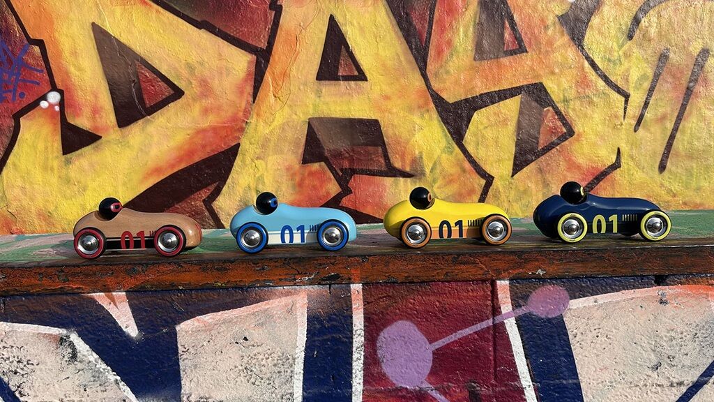 Neobyčajné autíčko oblých aerodynamických tvarov v jedinečnom dizajne, ktoré je určené na hranie aj ako atraktívny doplnok interiéru či zberateľský kúsok. Pri hre s autíčkom využíva dieťa mnoho zručností: jemnú motoriku, obratnosť, predstavivosť, kreativitu. Môže reprodukovať zvuky motora alebo sirén, parkovať do garáže, prechádzať sa. Hraním s ostatnými deťmi alebo členmi rodiny sa učia zdieľať, spolupracovať a napodobňovať, čím rozvíja dôležité sociálne zručnosti. Autíčko je vyrobené z masívneho bukového dreva, lakované ručne bezpečnými farbami tradičným procesom ponorenia do kúpeľa s farbou. Vyrobené vo Francúzsku, dodávané v potlačenej krabičke.