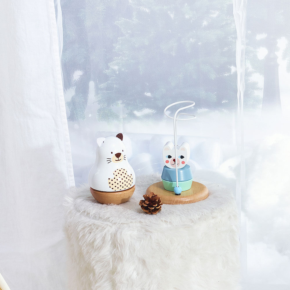 Lakovaná drevená hracia skrinka s postavičkou zvieratka si obľúbia aj najmenšie deti. Stane sa obľúbenou hračkou aj ozdobou detských izbičiek. Postavička po natočení hrá jemnú melódiu „Frère Jacques“.