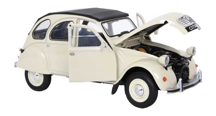 Detailný model kultového Citroënu 2CV (kačice) z kovu a plastu má otvárateľné dvere aj kapotu. Vernosť týchto modelov zvyšuje použitie lakov, ktoré majú zhodný farebný odtieň ako skutočné autá. Konkrétnu farbu si môžete zvoliť z ponúkaných možností. Obrázok produktu nemusí vždy zachytávať farebné prevedenie príslušného popisu. Mierka 1:24 je zhotovením na hrane medzi zberateľským modelom a hračkou, autíčka vyžadujú opatrnejšie zaobchádzanie. Dodávané v rôznofarebnej papierovej krabičke s plastovým priehľadom.